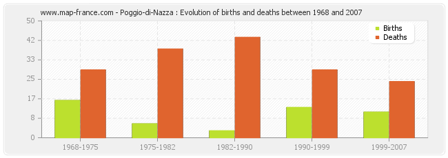 Poggio-di-Nazza : evolution of births and deaths from 1968 to 2007
