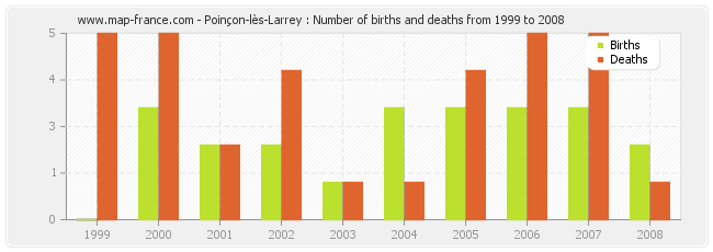 Poinçon-lès-Larrey : births and deaths from 1999 to 2008