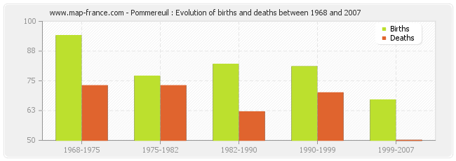 Pommereuil : evolution of births and deaths from 1968 to 2007