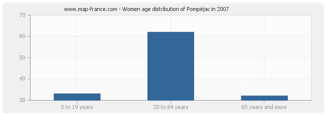 - Pompéjac women inhabitants from 0 to 19 years : 33