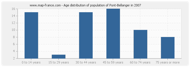 - Population of Pont-Bellanger from 15 to 29 years : 16 inhabitants