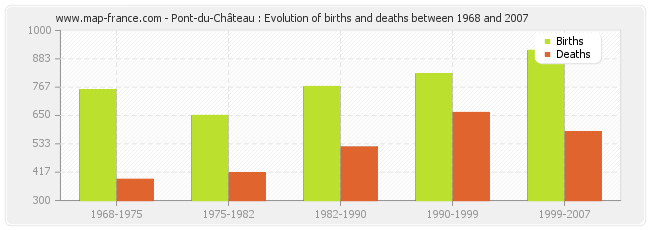Pont-du-Château : evolution of births and deaths from 1968 to 2007