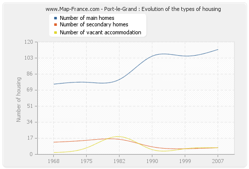 In 2007 the accommodations of Port-le-Grand consisted of 112 main homes, 7 second homes and 7 vacant accommodations.