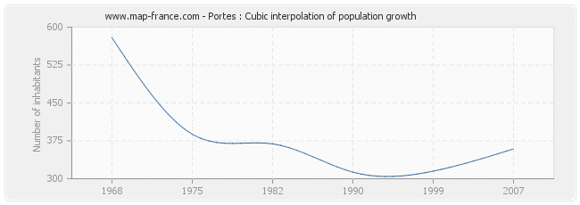 This curve shows the history of the population of Portes from 1968 to 2007 in cubic interpolation. This provides more precisely the population of the municipality of Portes the years where no census has been taken.