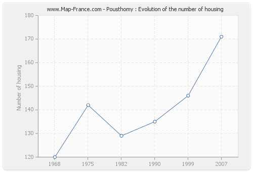 The number of housing of Pousthomy was 171 in 2007, 146 in 1999, 135 in 1990, 129 in 1982, 142 in 1975 and 120 in 1968.