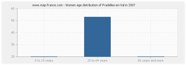 - Pradelles-en-Val women inhabitants from 20 to 64 years : 53