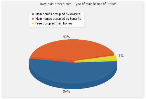 - Number of main homes of Prades occupied by owners : 1 616 - Number of main homes of Prades occupied by tenants : 1 257 - Number of main homes of Prades occupied free of charge : 95 |