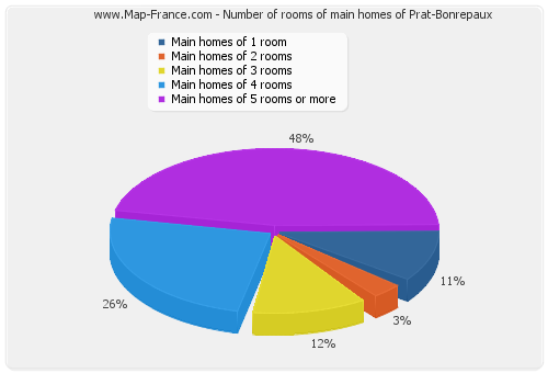 - Number of main homes of Prat-Bonrepaux of 1 room : 47 - Number of main homes of Prat-Bonrepaux of 2 rooms : 14 - Number of main homes of Prat-Bonrepaux of 3 rooms : 52 - Number of main homes of Prat-Bonrepaux of 4 rooms : 52 - Number of main homes of Prat-Bonrepaux of 5 rooms and more : 209 |