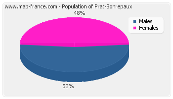 - Men inhabitants Prat-Bonrepaux in 2007 were 444 - Women inhabitants in 2007 were 417