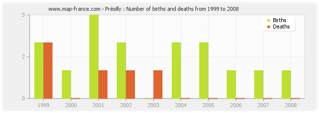 Présilly : births and deaths from 1999 to 2008