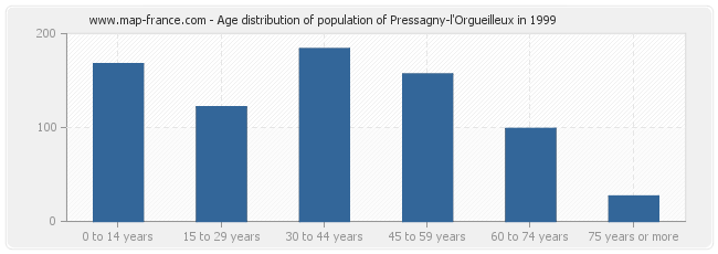 - Population of Pressagny-l'Orgueilleux from 30 to 44 years : 184 inhabitants