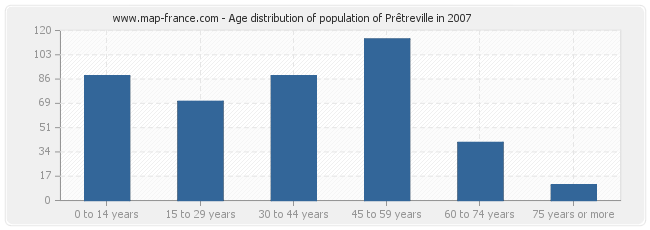 - Population of Prêtreville from 45 to 59 years : 114 inhabitants