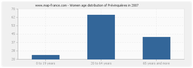 - Prévinquières women inhabitants from 20 to 64 years : 64