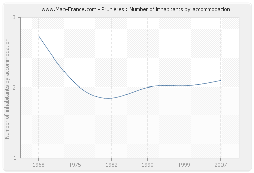 - Number of inhabitants per housing of Prunières in 2007 : 2,10