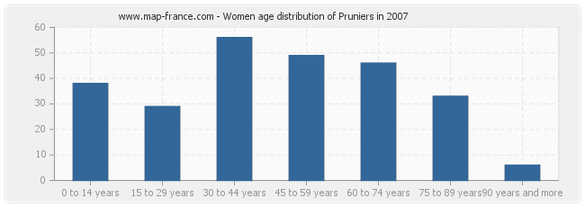 - Pruniers women inhabitants from 30 to 44 years : 56