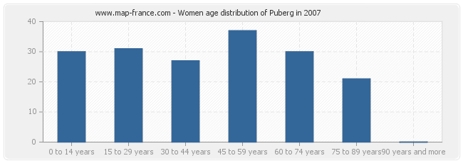 - Population of Puberg from 30 to 44 years : 55 inhabitants