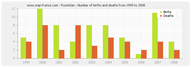 - Puymiclan in 2008 : 4 births and 2 deaths