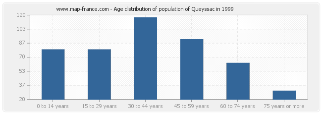 - Population of Queyssac from 30 to 44 years : 117 inhabitants