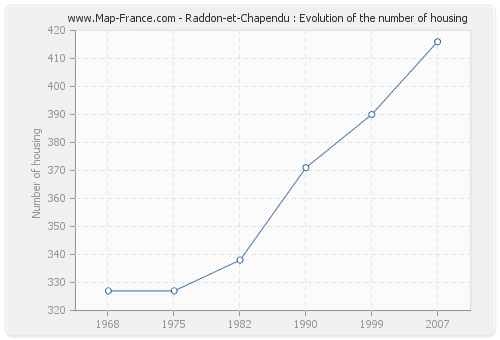 The number of housing of Raddon-et-Chapendu was 416 in 2007, 390 in 1999, 371 in 1990, 338 in 1982, 327 in 1975 and 327 in 1968.