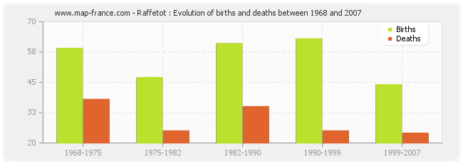 Raffetot : evolution of births and deaths from 1968 to 2007