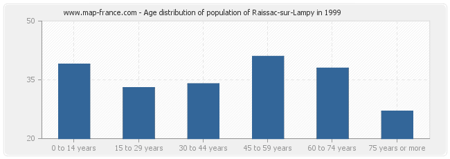 Distribution of the population of Raissac-sur-Lampy by age in 1999 :