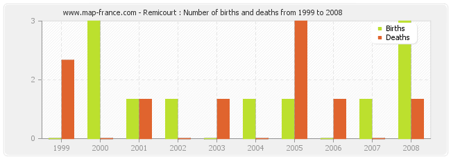 Remicourt : evolution of births and deaths from 1968 to 2007