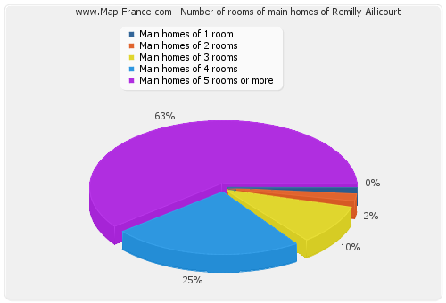 - Number of main homes of Remilly-Aillicourt of 1 room : 0 - Number of main homes of Remilly-Aillicourt of 2 rooms : 6 - Number of main homes of Remilly-Aillicourt of 3 rooms : 32 - Number of main homes of Remilly-Aillicourt of 4 rooms : 32 - Number of main homes of Remilly-Aillicourt of 5 rooms and more : 196 |