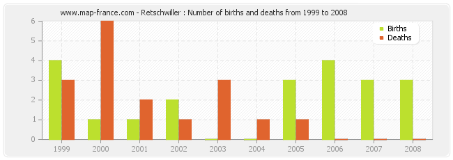 Retschwiller : births and deaths from 1999 to 2008