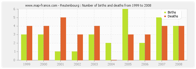 Reutenbourg : births and deaths from 1999 to 2008