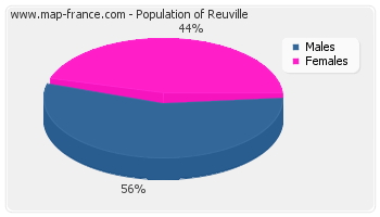 - Men inhabitants Reuville in 2007 were 65 - Women inhabitants in 2007 were 52