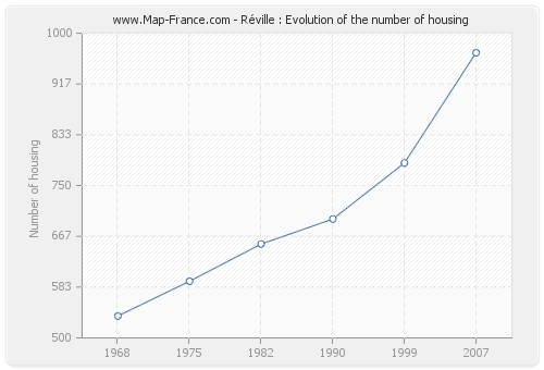 The number of housing of Réville was 968 in 2007, 787 in 1999, 695 in 1990, 654 in 1982, 593 in 1975 and 536 in 1968.