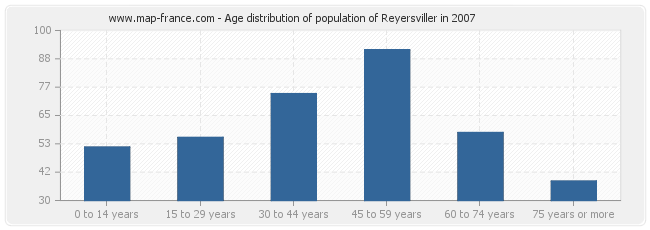 - Population of Reyersviller from 45 to 59 years : 92 inhabitants