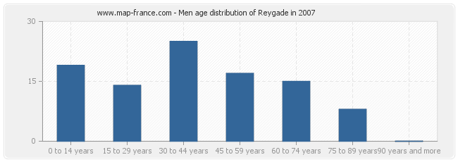 - Population of Reygade from 30 to 44 years : 28 inhabitants