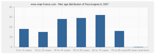- Reyrevignes men inhabitants from 60 to 74 years : 32
