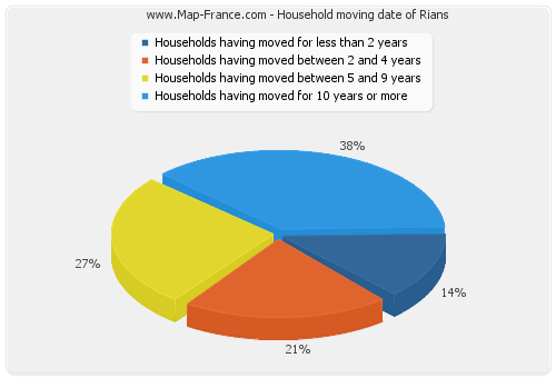 - Number of households of Rians having moved between 2 and 5 years : 347 - Number of households of Rians having moved between 5 and 9 years : 446 - Number of households of Rians having moved for 10 years or more : 625 |