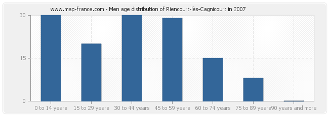 - Riencourt-lès-Cagnicourt men inhabitants from 30 to 44 years : 30