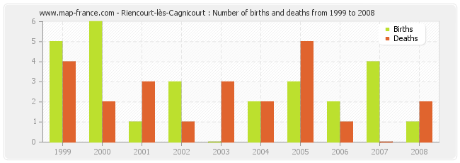 Riencourt-lès-Cagnicourt : births and deaths from 1999 to 2008
