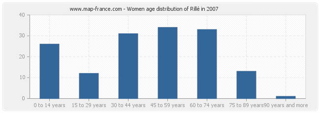 - Men inhabitants Rillé in 2007 were 135 - Women inhabitants in 2007 were 152