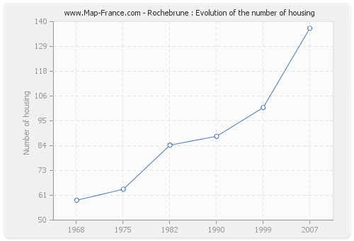 The number of housing of Rochebrune was 137 in 2007, 101 in 1999, 88 in 1990, 84 in 1982, 64 in 1975 and 59 in 1968.