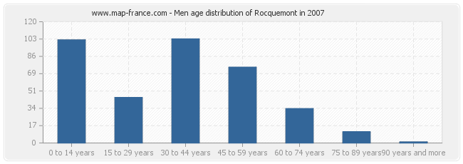 - Rocquemont men inhabitants from 30 to 44 years : 103