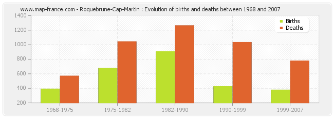 Roquebrune-Cap-Martin : evolution of births and deaths from 1968 to 2007