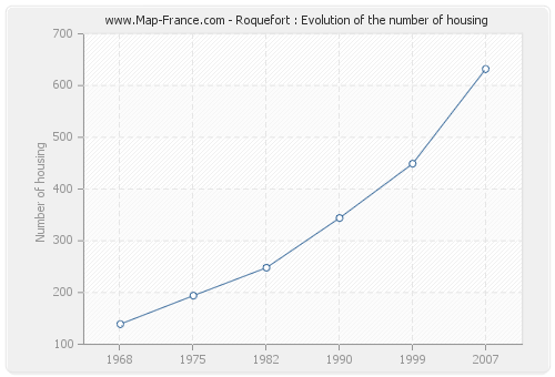 The number of housing of Roquefort was 632 in 2007, 449 in 1999, 344 in 1990, 248 in 1982, 194 in 1975 and 139 in 1968.