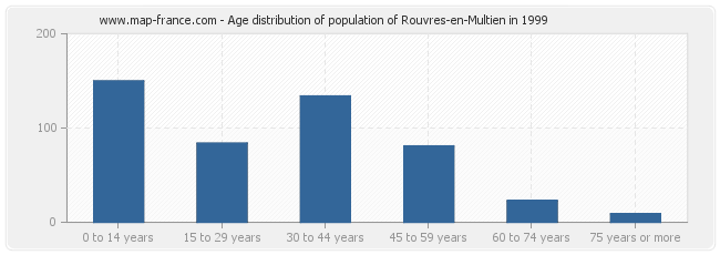 Distribution of the population of Rouvres-en-Multien by age in 1999 :