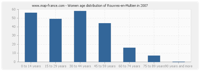 Women population distribution of Rouvres-en-Multien by age in 2007 :