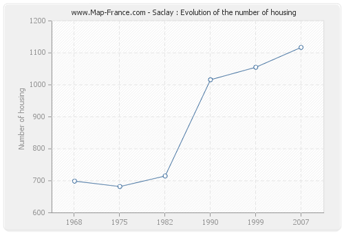 The number of housing of Saclay was 1 117 in 2007, 1 055 in 1999, 1 016 in 1990, 715 in 1982, 682 in 1975 and 699 in 1968.