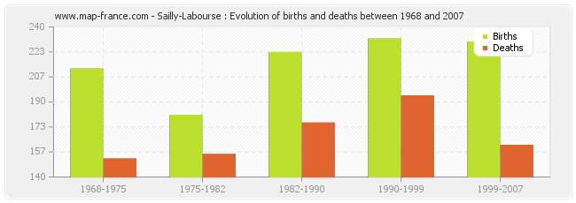 Sailly-Labourse : evolution of births and deaths from 1968 to 2007