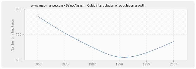This curve shows the history of the population of Saint-Aignan from 1968 to 2007 in cubic interpolation. This provides more precisely the population of the municipality of Saint-Aignan the years where no census has been taken.