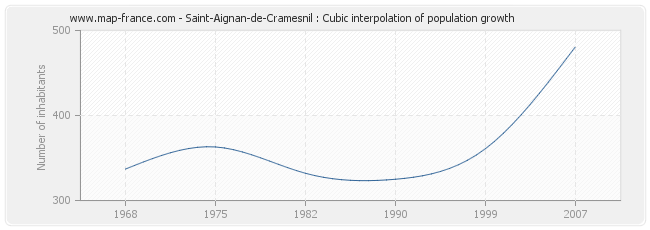 Population of Saint-Aignan-de-Cramesnil was 481 inhabitants in 2007, 361 inhabitants in 1999, 325 inhabitants in 1990, 332 inhabitants in 1982, 363 inhabitants in 1975 and 337 inhabitants in 1968.