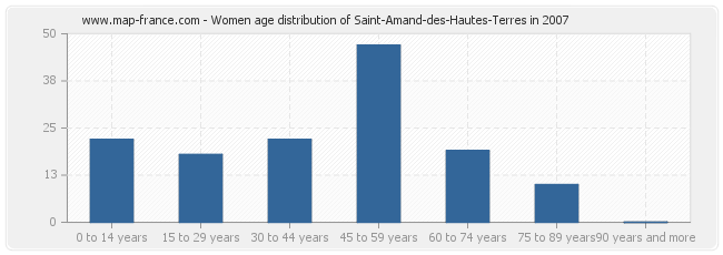 - Saint-Amand-des-Hautes-Terres women inhabitants from 45 to 59 years : 47