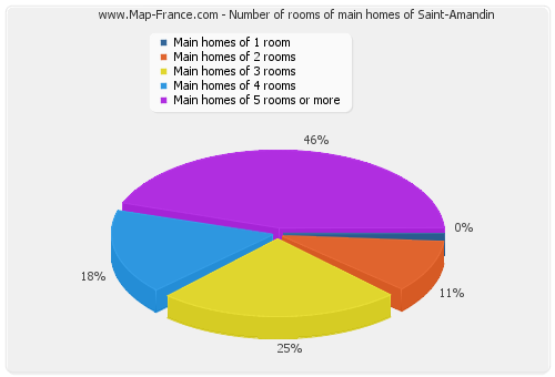 - Number of main homes of Saint-Amandin of 1 room : 0 - Number of main homes of Saint-Amandin of 2 rooms : 13 - Number of main homes of Saint-Amandin of 3 rooms : 30 - Number of main homes of Saint-Amandin of 4 rooms : 30 - Number of main homes of Saint-Amandin of 5 rooms and more : 55 |